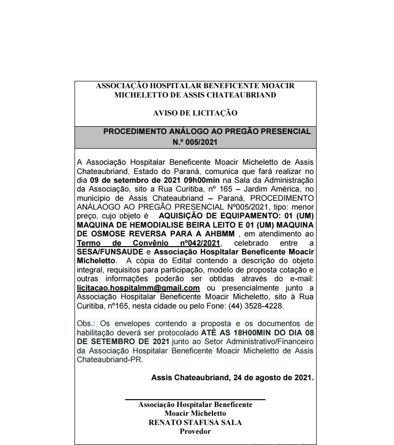 da Associação Hospitalar Beneficente Moacir Micheletto de Assis